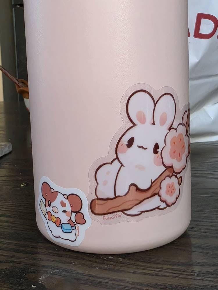 Cherry Blossom Bunny Vinyl Sticker (Transparent)